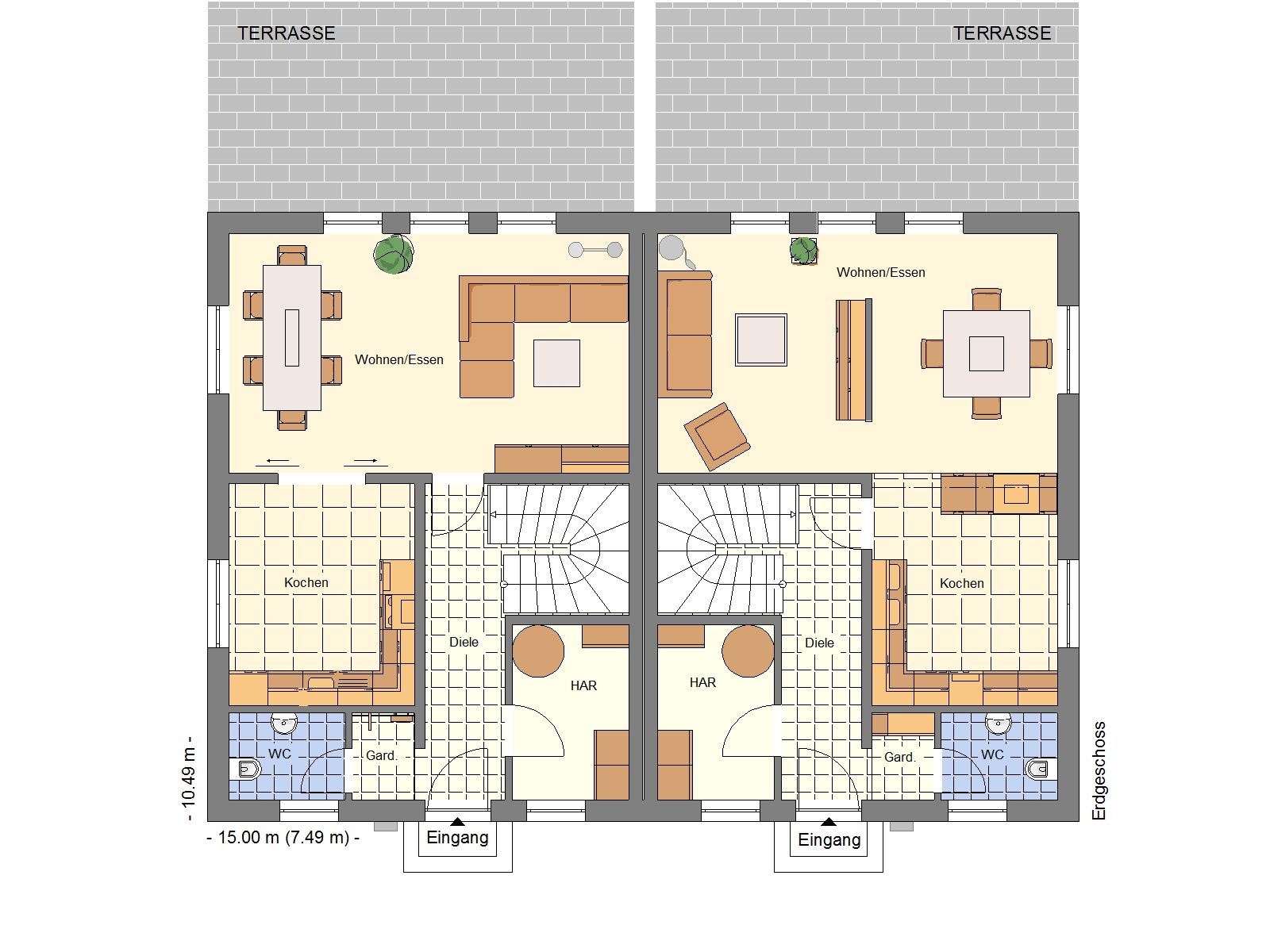 Projektiert sind die Doppelhäuser in KfW-55, die auf KfW-40 erweitert werden können.